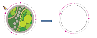 mengelilingi taman yang berbentuk lingkaran, melalui jalan setapak melingkar